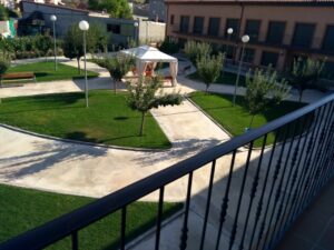 Lo conforman más de 1.600 m² de zonas verdes, con recorridos accesibles, árboles frutales y zonas de descanso a la sombra. Un entorno natural privilegiado para pasear, hacer ejercicio suave o disfrutar al aire libre.
